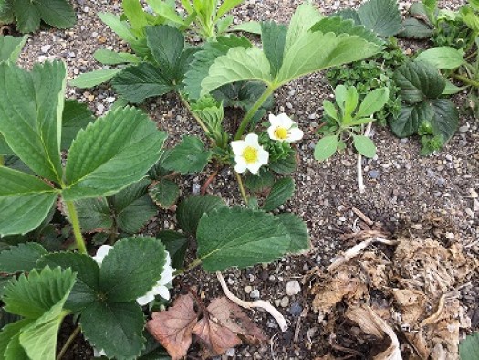 The soil has arrived. Thank you to Sharon Barnes for helping with the delivery and development of the right kind of soil for our garden boxes. Due to the rain, we did not do much with the gardens this week. However, it looks like we have strawberries and asparagus!