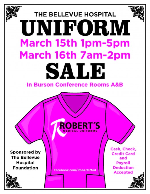 A wide variety of medical/clinical uniforms will be available. Uniforms are provided by Robert's Uniforms.