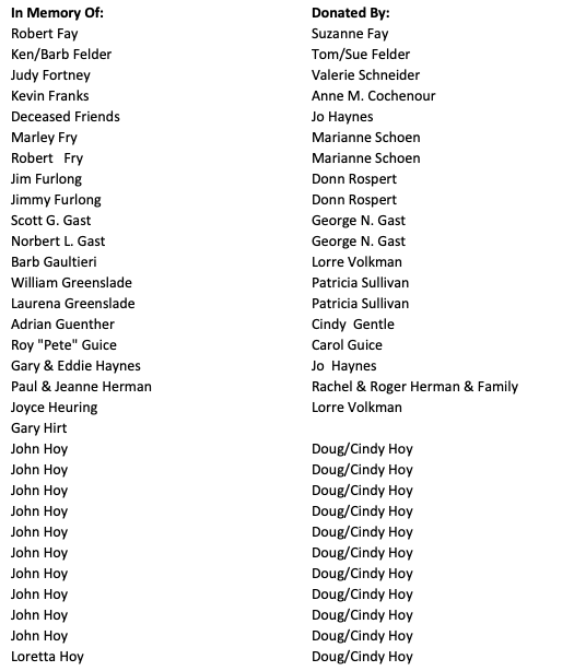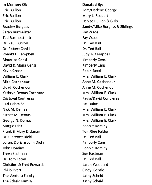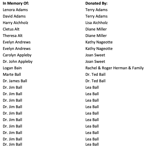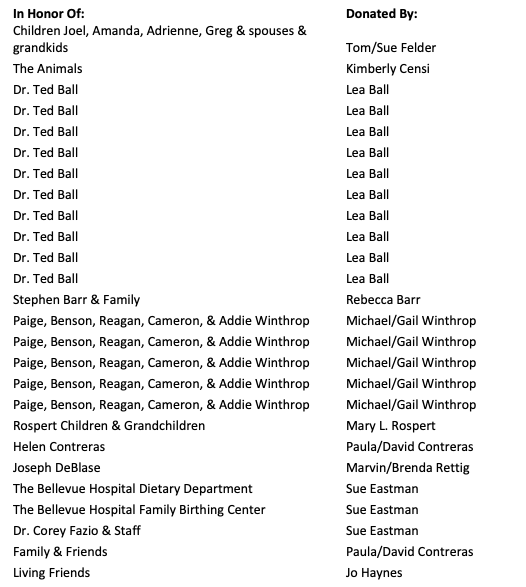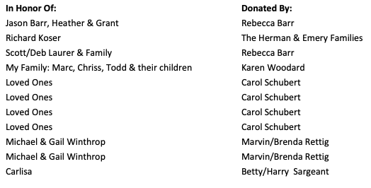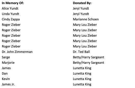 The lists of individuals being honored and remembered, and contributors can be found below, as well as displayed next to the Lights of Love tree in the hospital.