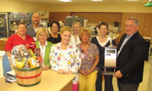 “There were two separate contests, one involving the different hospital departments, and one involving the community healthcare businesses,” explained Kate Herring, director of TBH’s Foundation. “The hospital departments conducted a basket raffle, while the community healthcare offices sold paper footballs for donations as well as chances on Cleveland Cavaliers tickets and other drawings.”