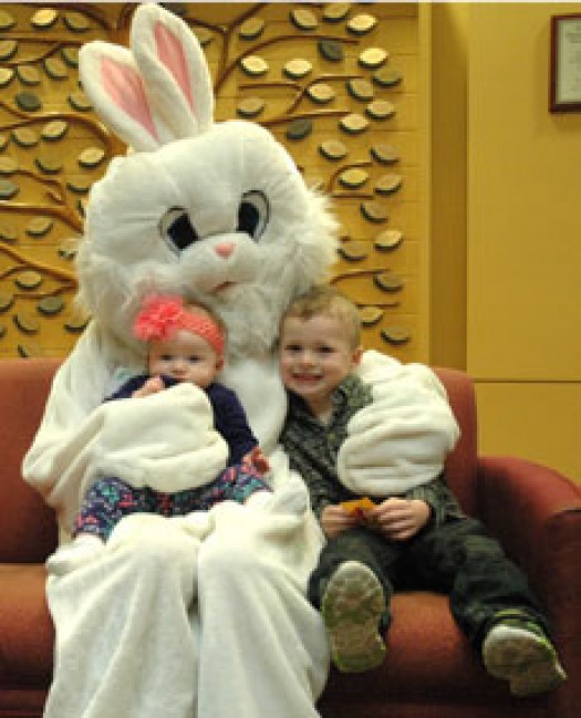 Thanks to The Willows of Bellevue for helping The Bellevue Hospital Foundation sponsor the Easter Bunny's visit to The Bellevue Hospital (TBH) on March 25, 2016! Enjoying the Bunny's visit are, Madeleine (4 mos.) and Ethan (3) Kruse; Ellie Molyet (5 mos.), and Vance Valentine (1). The Easter Bunny has already marked his calendar for Good Friday, April 14, 2017, to return once again to TBH for photos and fun with the kids!