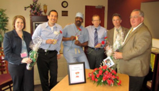 The first Doctor’s Day was observed on March 30, 1933 in Georgia to mark the anniversary of the first use of general anesthesia in surgery. The first National Doctor’s Day was observed in 1991. Kate Herring, left, director of TBH’s Foundation, and Michael K. Winthrop, right, President and CEO of TBH, presented beverage mugs and goodie bags, cookies, and flowers to each of the doctors, including, from left to right, David West, M.D. (radiologist), Donald Smith, M.D. (urologist), Gregory Karasik, M.D. (OB/GYN), and Charles Valone Jr., D.O. (Internal Medicine).
