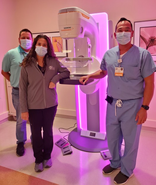 • TBH’s new MAMMOMAT 3D mammography system, from left, with: Marc Schoen, director of Diagnostic Imaging; Courtney Bollinger, certified mammographer and David West, M.D., radiologist.