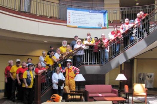 The motorcycle riders, most of them affiliated with Bellevue Chapter K-2, Ohio Region D of the Gold Wing Riders, brought with them new stuffed animals to be used to comfort sick or injured children at the local hospital facility. Cyclists came from seven different area communities and also brought with them Ronald McDonald, who also helped to spread some cheer during his visit. Here, the group poses in TBH’s Atrium before hitting the road to continue their charitable works.