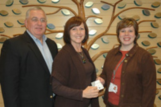 Jill Colizoli, center, Vice President of The Bellevue Hospital (TBH) Auxiliary, presents a $10,000 check to Michael K. Winthrop, left, President and CEO of TBH, and Kate Herring, Director of TBH’s Foundation. The donation will be used toward the purchase of digital mammogram equipment at TBH. The new equipment is expected to be installed in early January in TBH’s Diagnostic Imaging Department. Donations toward the purchase of new equipment is tax-deductible through the Foundation. For additional information, contact Kate Herring at 419.483.4040, Ext. 4319.