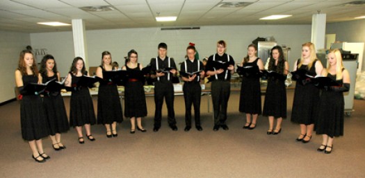 Participants in The Bellevue Hospital’s monthly Mature Audience Luncheon met on Thursday, Dec. 8 to celebrate the season. The 113 guests were entertained by members of the Bellevue Senior High School Choraliers, under the direction of Ashlea Bache. The kids sang and performed several seasonal songs as well as a couple of songs to be featured in their upcoming Spring Show. Participants also had an opportunity to support the Bellevue Fish and Loaves Food Pantry by bringing in non-perishable food items or donating money to the cause. A total of $107 was collected along with hundreds of food items, all donated to Fish and Loaves. The Mature Audience Luncheon group is open to the public and meets on the third Thursday of every month (second Thursday in November and December) in Building B, Conference Room, behind the site of the old hospital at 815 Northwest Street. Luncheons run from 11:30 a.m. until 1 p.m. and include lunch and a program. For additional information call the hospital at 419.483.4040, Ext. 4899.
