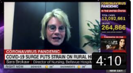 The Bellevue Hospital was recently featured on CNN’s New Day Weekend in a segment on COVID-19 in rural settings. Sara Brokaw, Vice President of Patient Services, was interviewed by Bellevue native Christi Paul, co-host of CNN’s New Day Weekend, about the impact of COVID-19 on an independent rural hospital of our size. Watch the segment below, which originally aired on Saturday, November 28, for more details.
