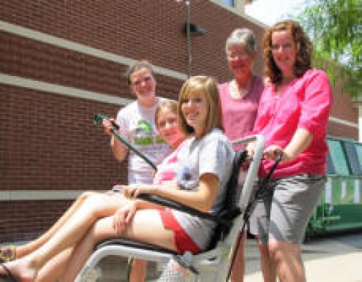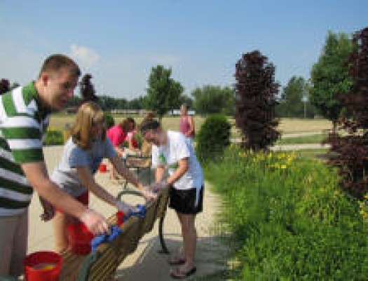 Several local and area teenagers have spent a portion of their summer doing volunteer work at The Bellevue Hospital (TBH) as part of the hospital’s VolunTeen program for kids ages 14-17. The group recently participated in TBH’s “Wellness and Wheelchair Wash.” Washing the benches on the Wellness Trail are, foreground, Edward King, Catherine Wilson, Kirsten Albright, and in the background, Sarah Hunker, Alivia Dean and VolunTeen Coordinator Linda Irons. The group then washed and dried the wheelchairs throughout the hospital. Pictured are Dean and Wilson (seated), along with Albright, Irons, and Hunker. VolunTeens also have the opportunity to earn a scholarship their senior year in high school. For additional information on the VolunTeen Program at TBH, contact June Washburn, Volunteer Coordinator, at 419.483.4040, Ext. 4408, or Irons at 419.483.0069.