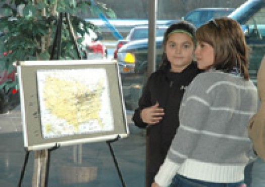 Spectators at Monday’s “Is Your Heart Set on a Vette” Corvette raffle look over a map showing where all of the 1,270 tickets for the raffle were sold. Tickets were sold to people in 36 states including Alaska and Hawaii. Top prize was a 2011 Corvette Convertible 1LT or $50,000 cash.