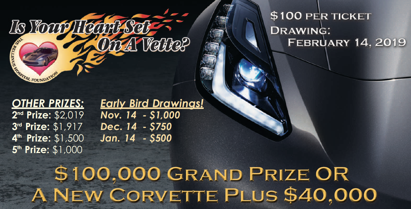 The first “Early Bird” drawing was held for The Bellevue Hospital Foundation’s 2019 “Is Your Heart Set on a Vette” Corvette Raffle on November 14. The winner of $1,000 was Jason Scheuring from Wernersville, Pennsylvania. Video of the drawing may be seen below. Early Bird winning tickets are...