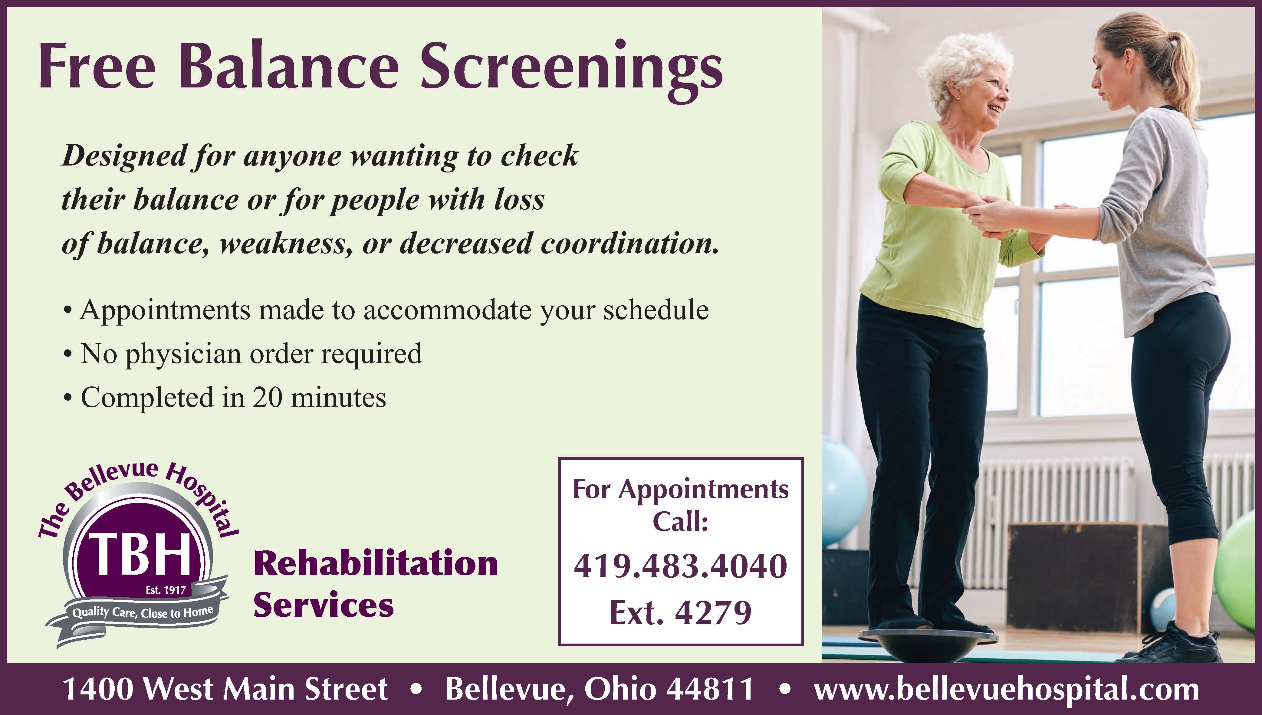 The Bellevue Hospital offers free balance screenings for loss of balance, weakness or decreased coordination - to help keep you safe.