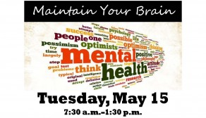 “Maintain Your Brain” will be offered on Tuesday, May 15 from 7:30 a.m. - 1:30 p.m in Burson Conference...
