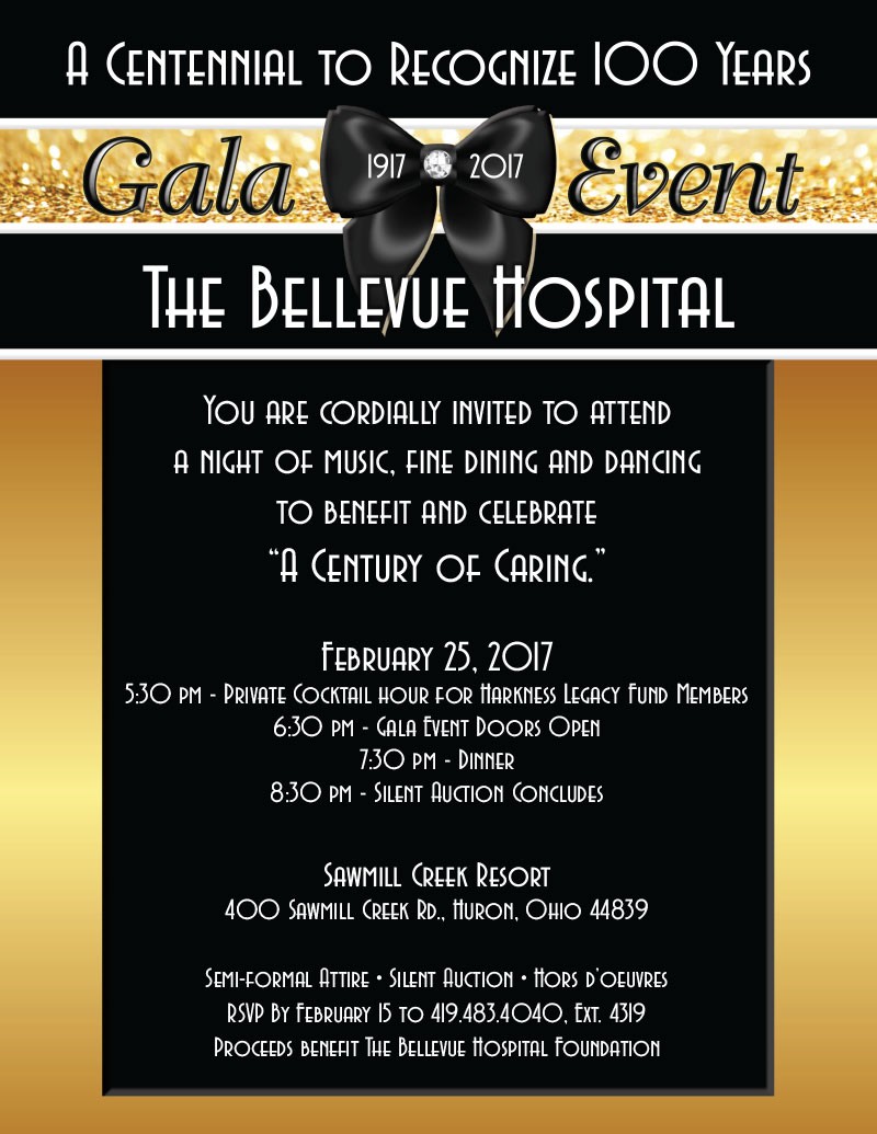 The Bellevue Hospital (TBH) will celebrate its 100th Anniversary on March 6, 2017. In honor of this milestone, TBH is hosting a Centennial Gala Event on Saturday, Feb. 25, 2017 at Sawmill Creek Resort in Huron.